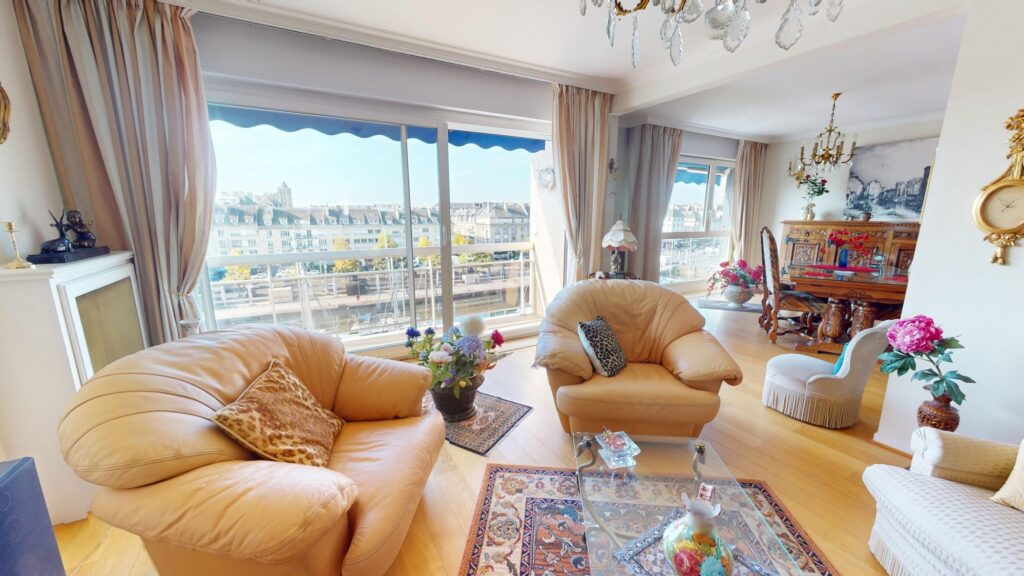 Les bons biens, votre agence immobilière à Caen, vous propose sur le port de Caen, dans une résidence de standing avec ascenseur, un appartement traversant de 97 m², particulièrement rare à la vente.