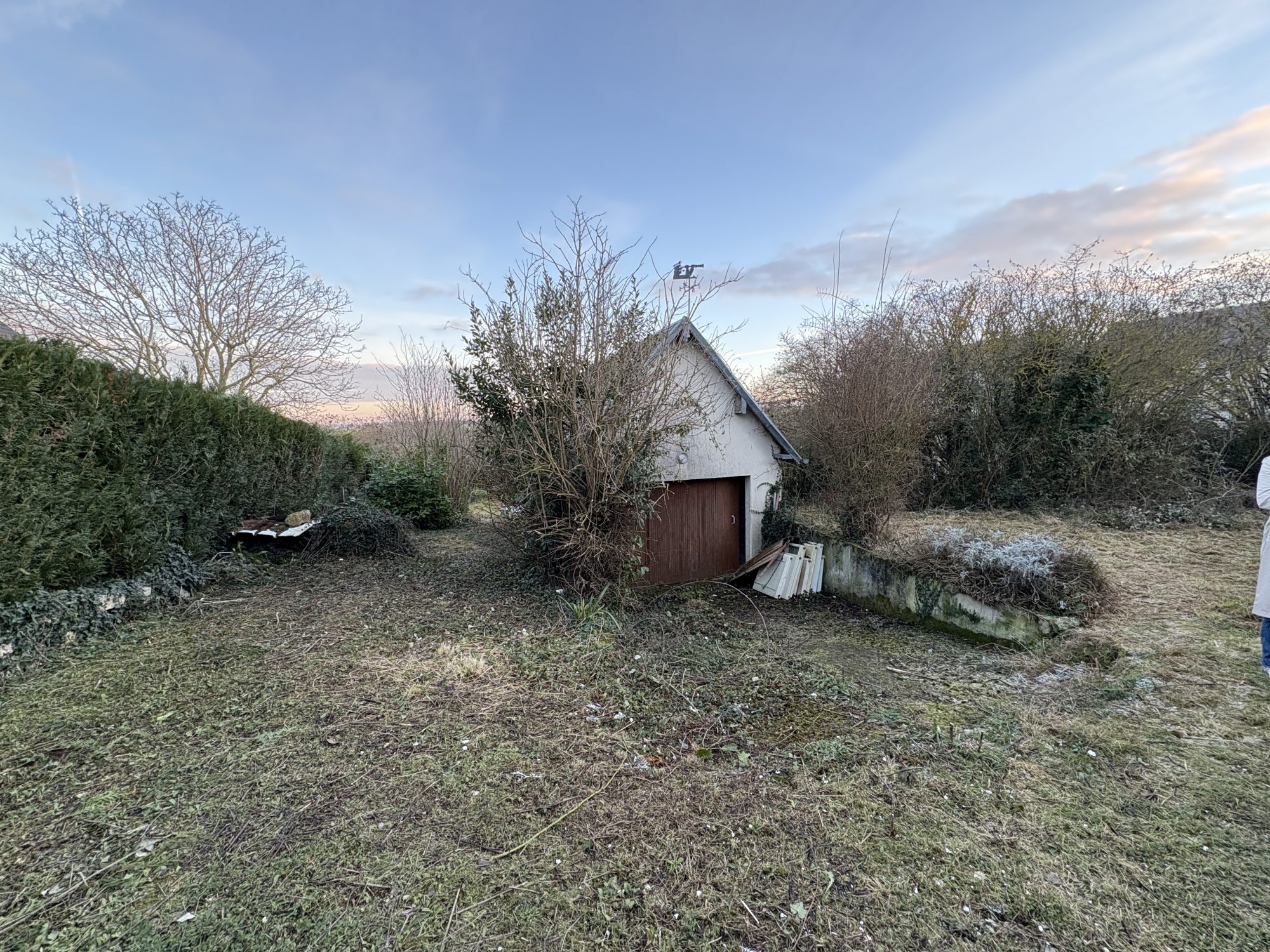 À l’extérieur, vous profiterez d’un jardin offrant de nombreuses possibilités d’aménagement, d’une allée gravillonnée et d’un grand garage indépendant. Le terrain permet également d’imaginer la création de terrasses avec une belle vue dégagée, le terrain surplombant la campagne.