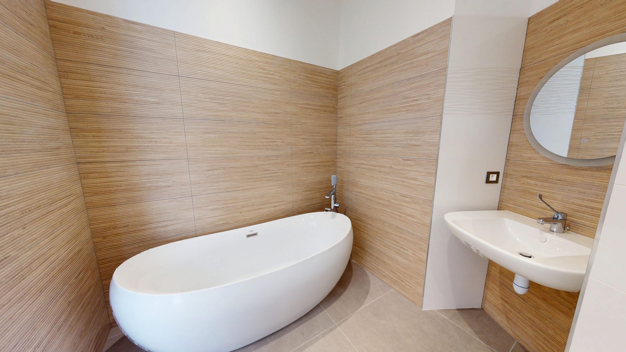 – 1 salle de bains avec baignoire et douche PMR