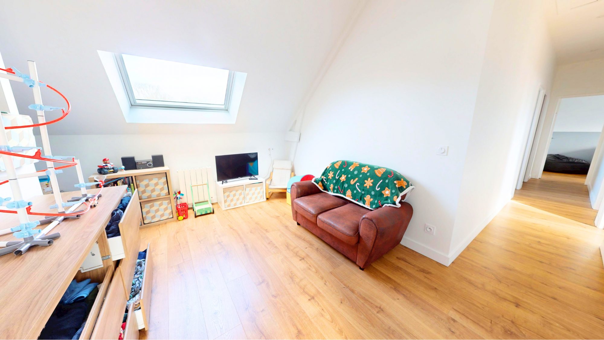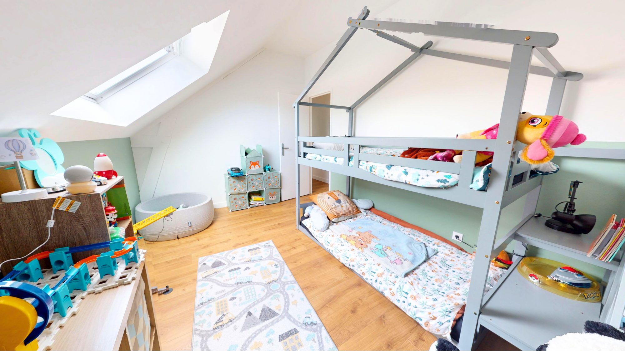 Le deuxième étage se compose d’une mezzanine, de cinq chambres, d’un WC indépendant et d’une salle d’eau.